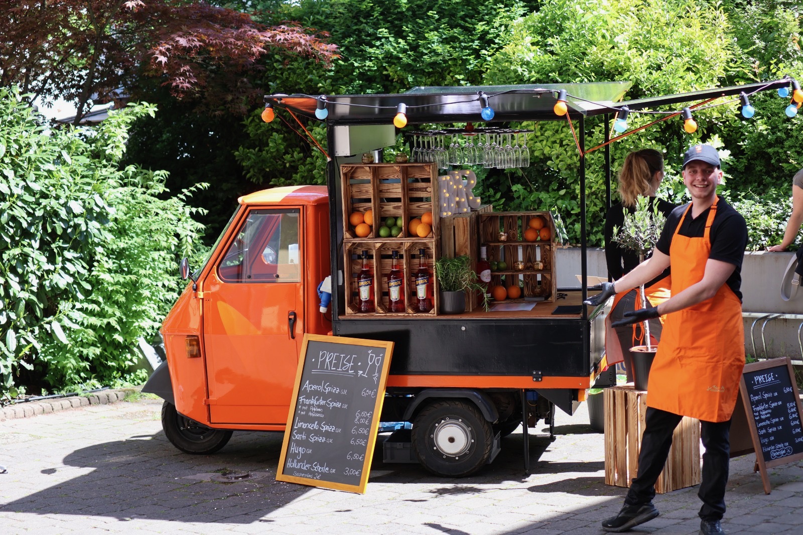 Hinter der mobilen Spritz Bar stehen Frederic und sein Team, sie blicken auf über 10 Jahre Erfahrung in der Gastronomie und im Eventbereich zurück. Mit Leidenschaft für hochwertige Drinks und besondere Events hat Frederic die Idee entwickelt, eine stilvolle Ape-Bar auf Veranstaltungen zu bringen und damit italienisches Aperitivo-Flair nach Deutschland zu holen.